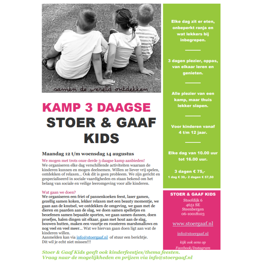 Betaling doen we in de week zelf met papa en mama regelen. Mail dus snel naar info@stoergaaf,nl